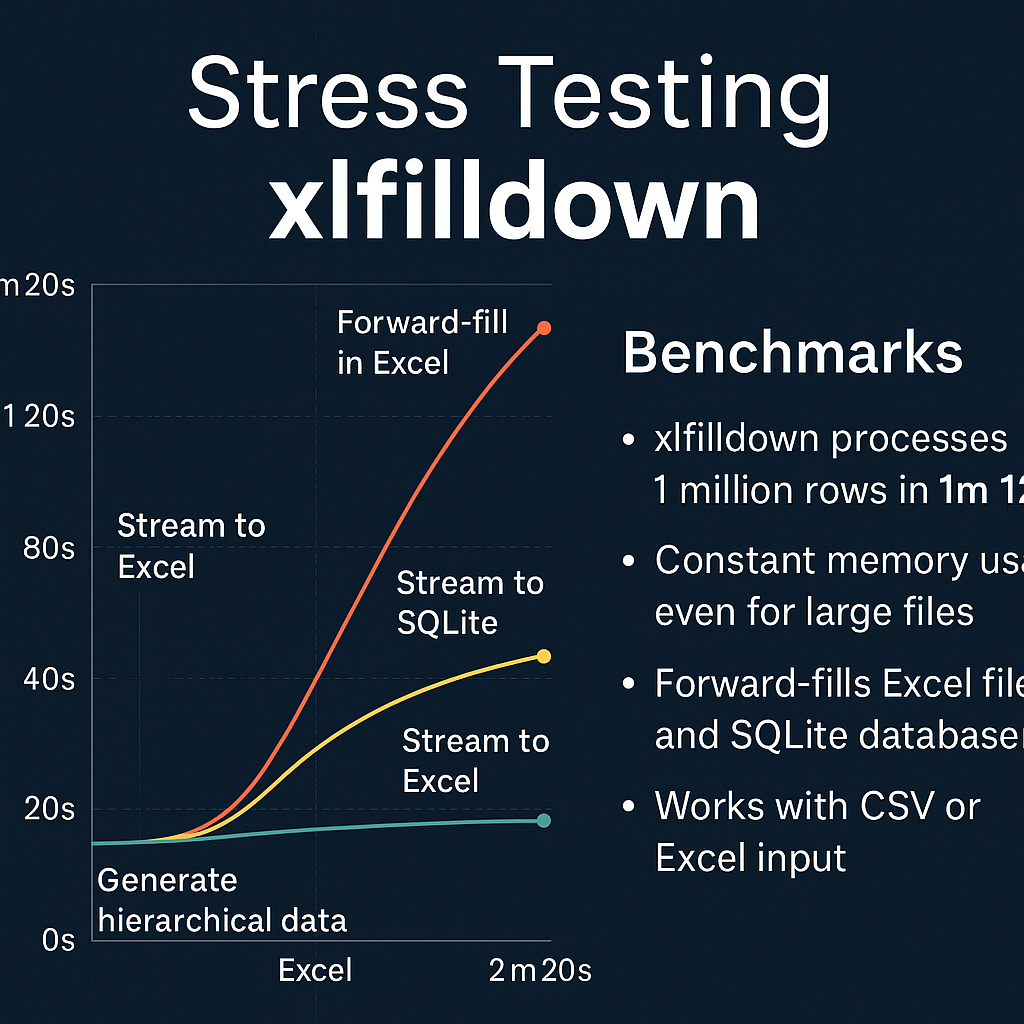 When I first started building xlfilldown, my goal wasn’t just correctness, it was speed and predictability. I wanted something that could chew through large Excel files without blowing up your memory, no matter how messy or hierarchical the data looked.
